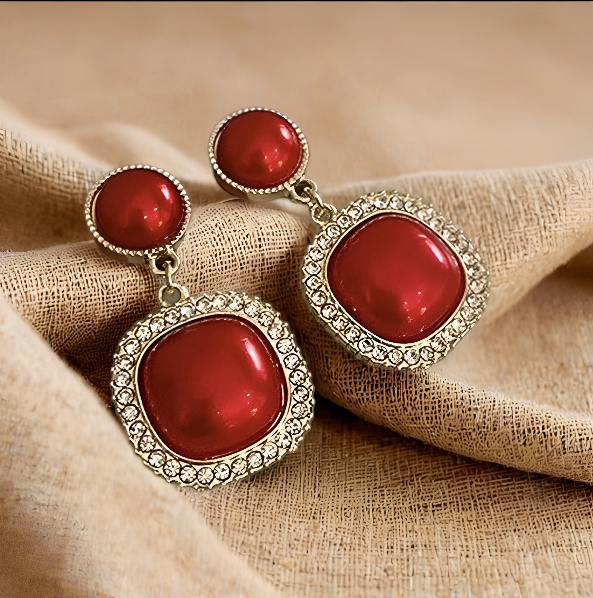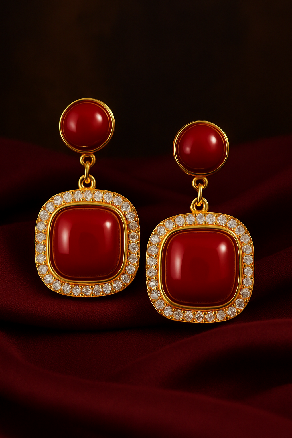 Trendy Red Stone Drop Earrings for Women & Girls | Gold-Plated Party Wear Jewellery