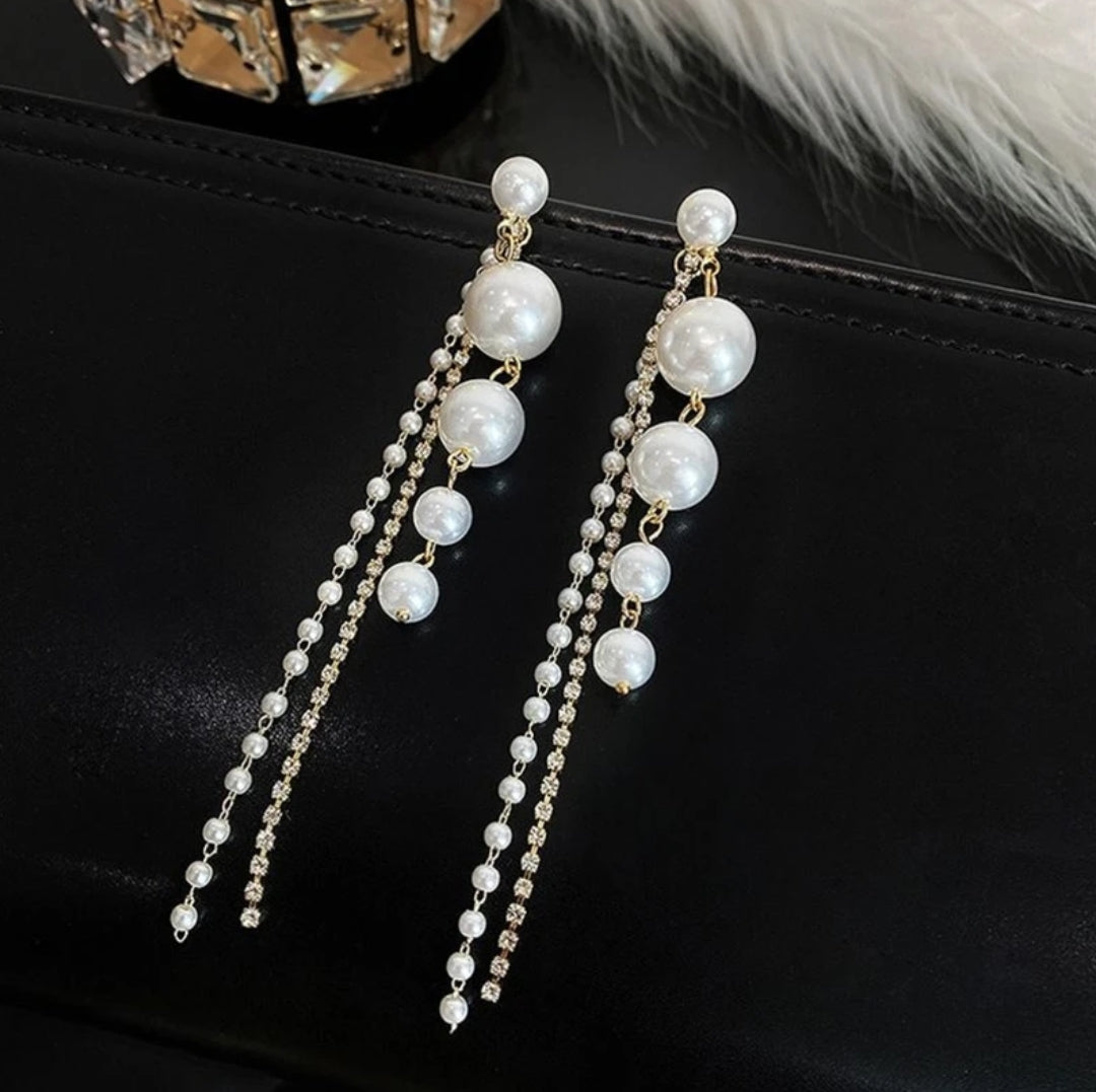 Elegant Pearl Drop Earrings with Rhinestone Chains | Women’s Trendy Jewellery