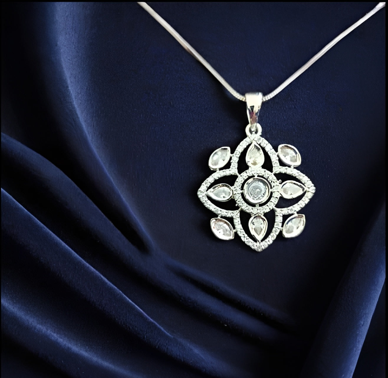 Trendy Floral Diamond Look Pendant with Chain | Festive & Casual Wear Jewellery